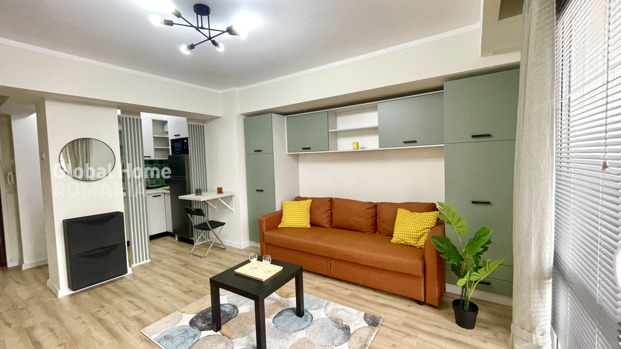 A fully renovated studio offered for its first rental, located in the ultra-central University Square area. Positioned on the 5th floor, the property offers an exceptional view toward Calea Victoriei and the Palace of the National Military Center. The entrance to the building is through Edgar Quinet Street, directly across from Casa Capșa.