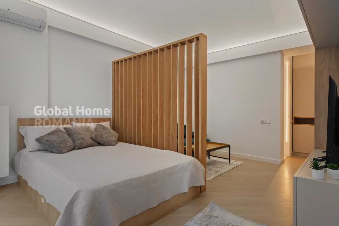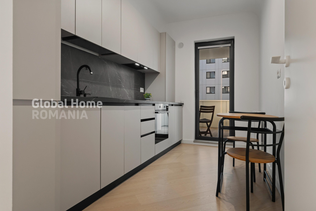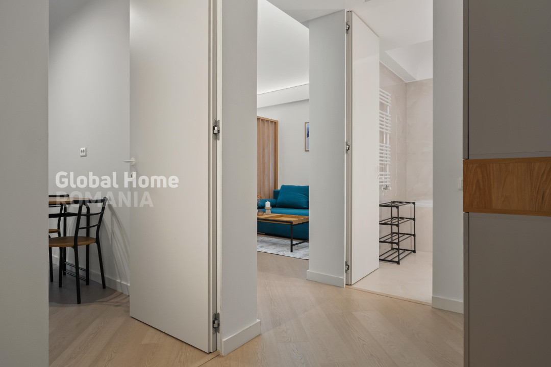 Apartamentul este recent renovat și complet echipat pentru un stil de viață confortabil. Dispune de bucătărie complet utilată, cu frigider încorporat, plită și cuptor electric, hotă și mașină de spălat vase. Zona de zi include un pat inteligent delimitat cu un paravan de canapeaua extensibilă, Smart TV și iluminat LED, iar confortul termic este asigurat prin centrală termică proprie și aer condiționat.