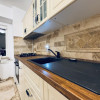 Bucătăria este amenajată într-un stil modern și natural, finisată cu piatră naturală – travertin, care oferă o atmosferă caldă și elegantă.