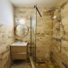 Baia păstrează aceeași linie elegantă prin folosirea travertinului, oferind un design simplu, dar foarte funcțional.