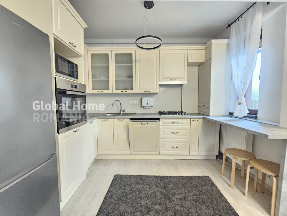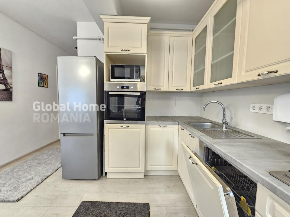 - Bucatarie complet echipata: frigider, plita pe gaz, hota, cuptor cu microunde, masina de spalat vase, tacamuri + vesela