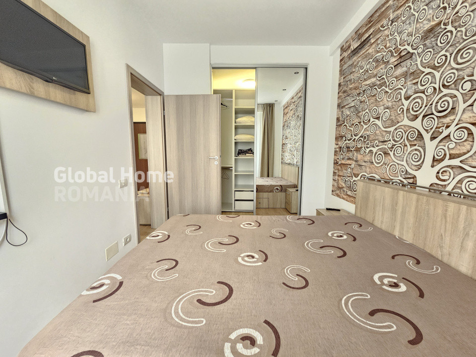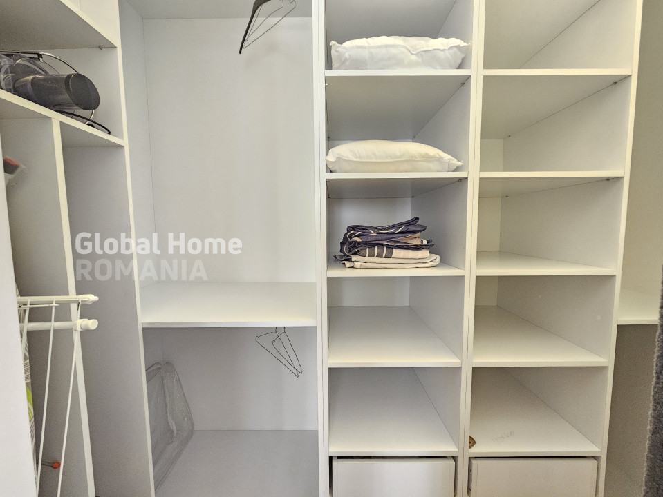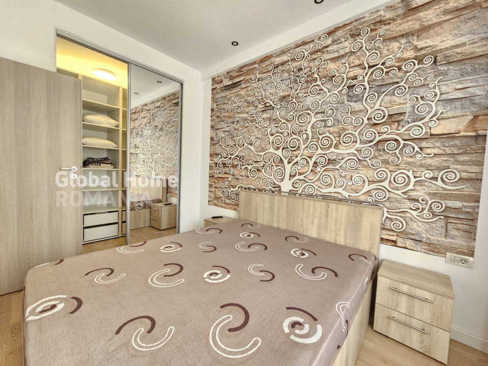 - Dormitor: pat matrimonial, dressing spatios cu usi glisante