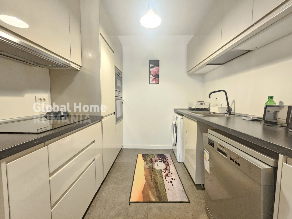 - Bucatarie complet echipata: frigider, plita electrica, cuptor electric, hota, masina de spalat vase, cuptor cu microunde