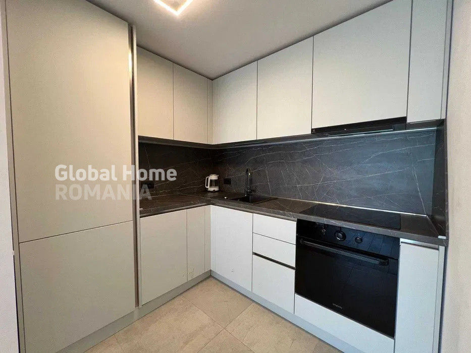 - Bucatarie complet echipata: frigider incastrat, plita electrica, cuptor electric, hota, masina de spalat vase