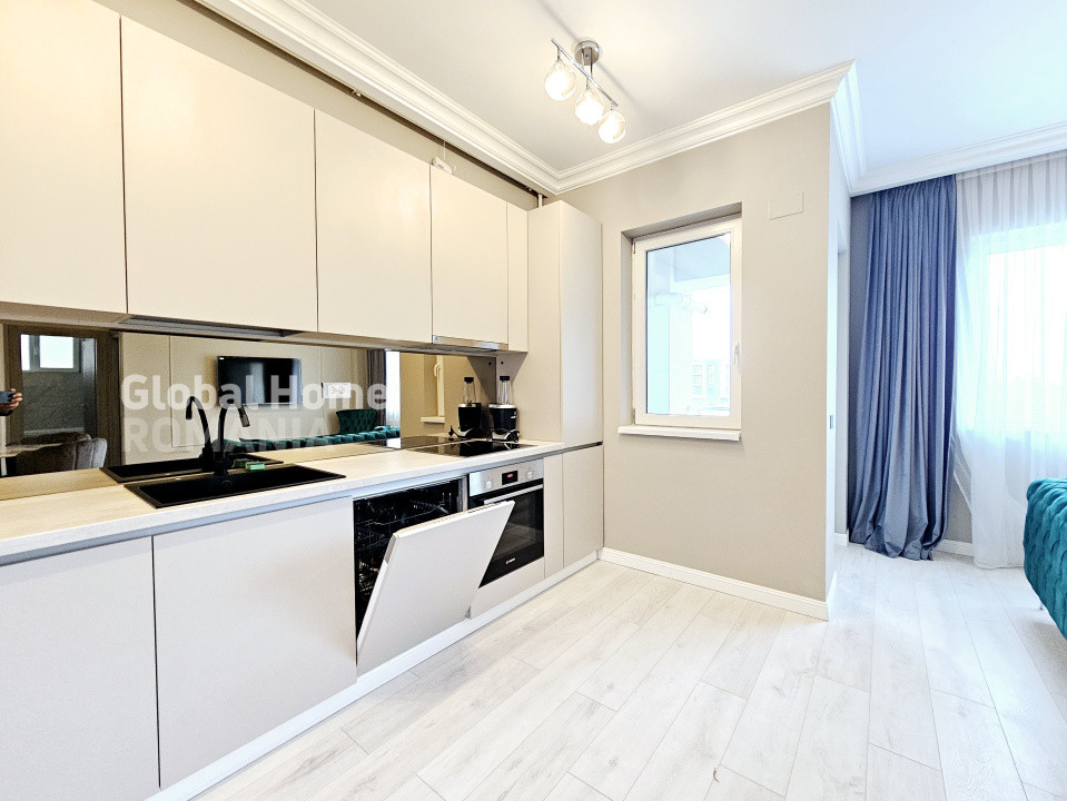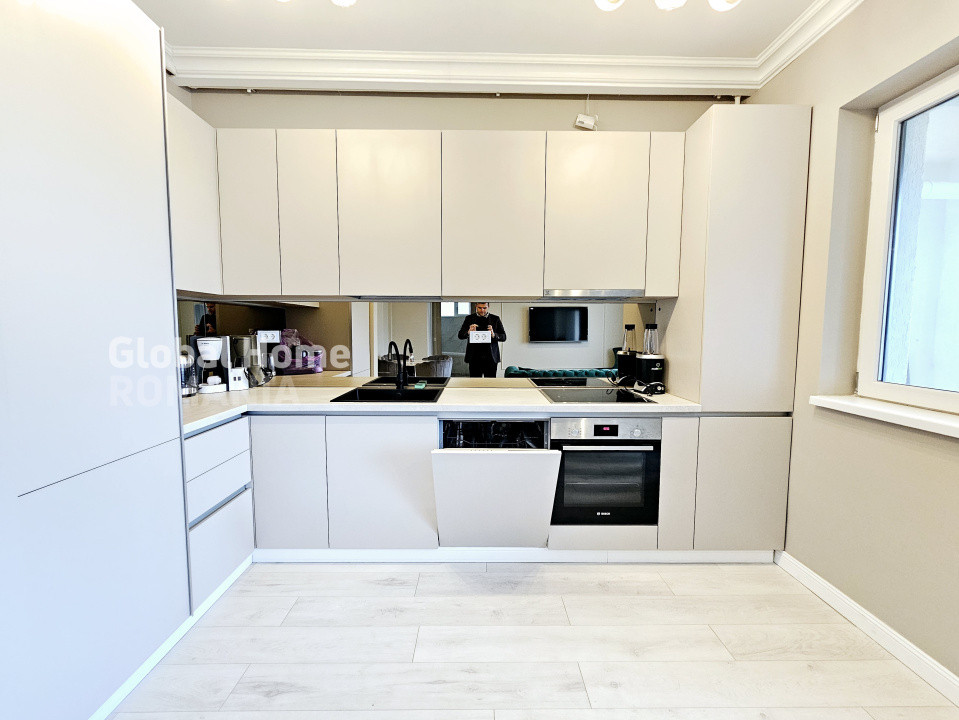 - Bucatarie complet mobilata si utilata: plita electrica, cutor electric, hota, frigider incastrat, masina de spalat vase