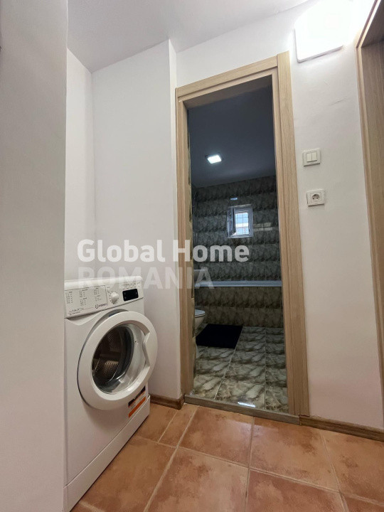 - Bucatarie mobilata si echipata cu: plita pe gaz, cuptor electric, hota, frigider,