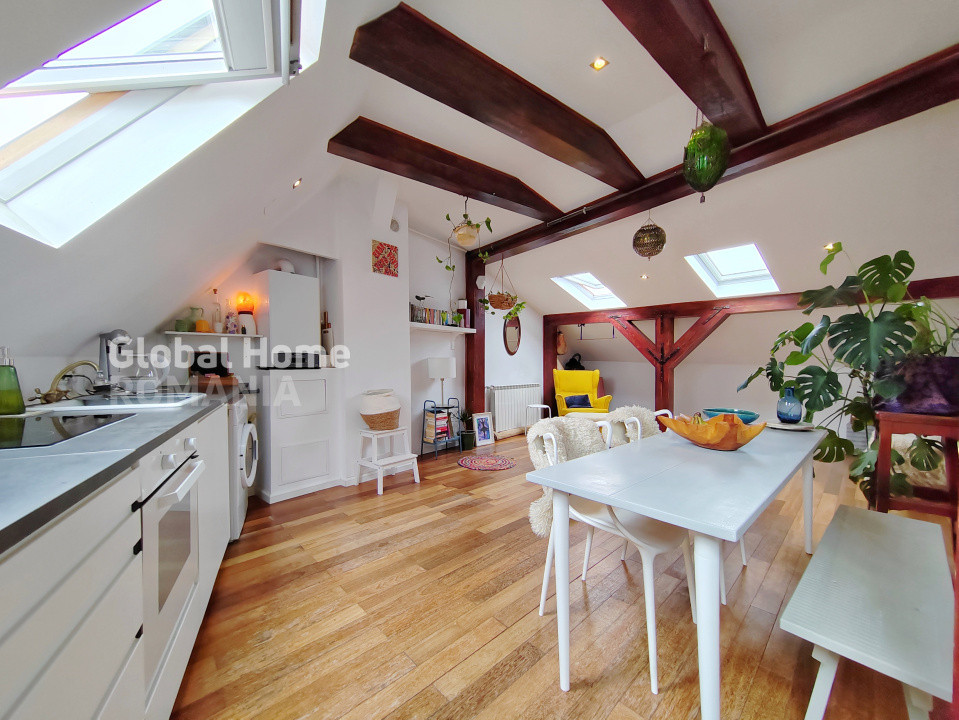 We are offering for rent a charming 2-room, semi-detached apartment, located in the attic of an elegant villa with an inner courtyard. The property has a bohemian and cozy atmosphere, ideally situated in one of the most desirable central areas of the Capital, just a 10-minute walk from Unirii metro station.