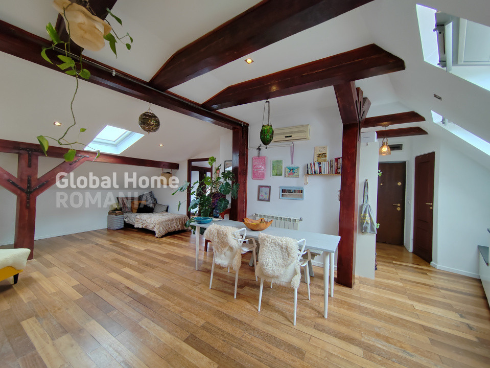 Oferim spre închiriere un apartament cu 2 camere, semidecomandat, situat la mansarda unei vile elegante cu curte interioară. Proprietatea are un aer boem și cozy, fiind amplasată într-una dintre cele mai căutate zone centrale ale Capitalei, la doar 10 minute de mers pe jos de stația de metrou Unirii.