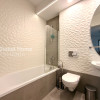 The master bedroom is arranged with a bed and mattress, a spacious wardrobe, chest of drawers, TV, and air conditioning, offering a comfortable and intimate atmosphere. The bathroom is modern, fitted with a bathtub and quality sanitary fixtures, while the hallway provides generous built-in storage solutions.