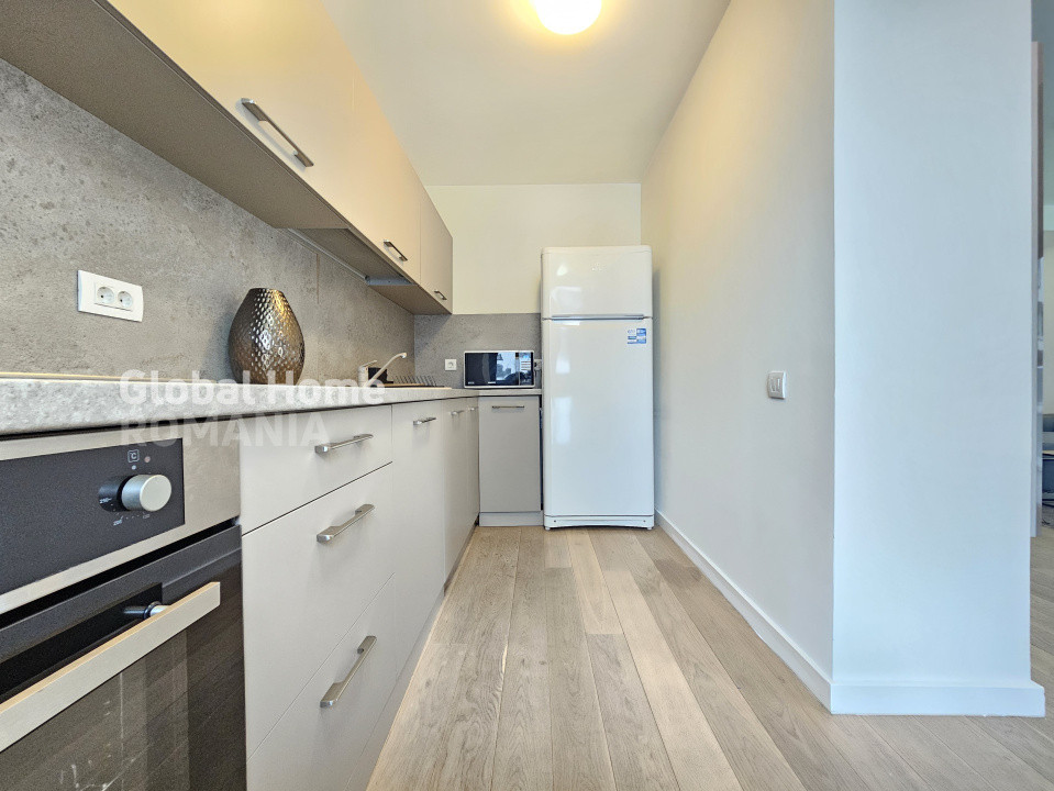 - Bucatarie complet echipata: frigider, plita electrica, cuptor electric, hota, cuptor cu microunde