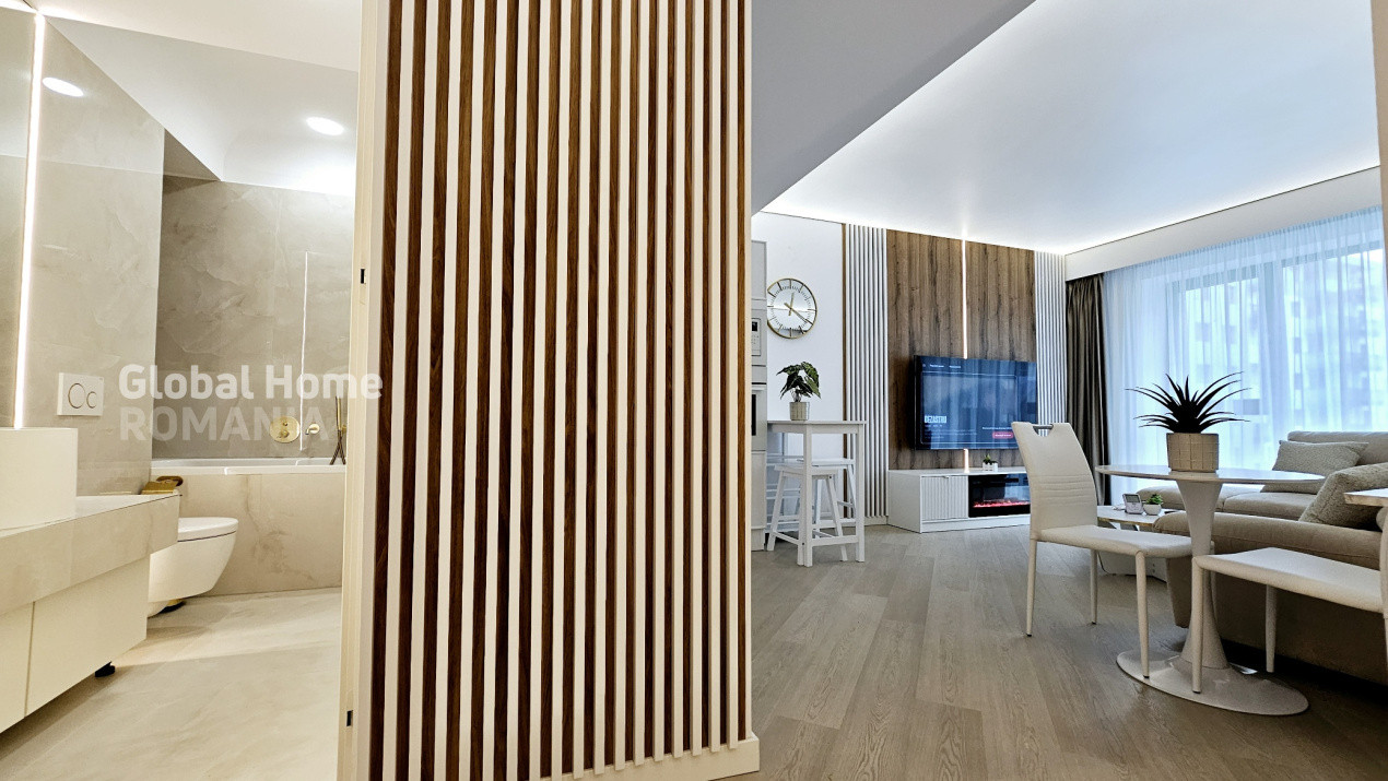 Proprietate elegantă şi spaţioasă, perfectă pentru cei care caută confort şi lux intr-un spatiu destinat caminului si familiei situata in zona Pipera Nord in cadrul complexului Cortina North. Aceast apartament oferă un design modern, cu dotari si finisaje de înaltă calitate si mobilier de lux.