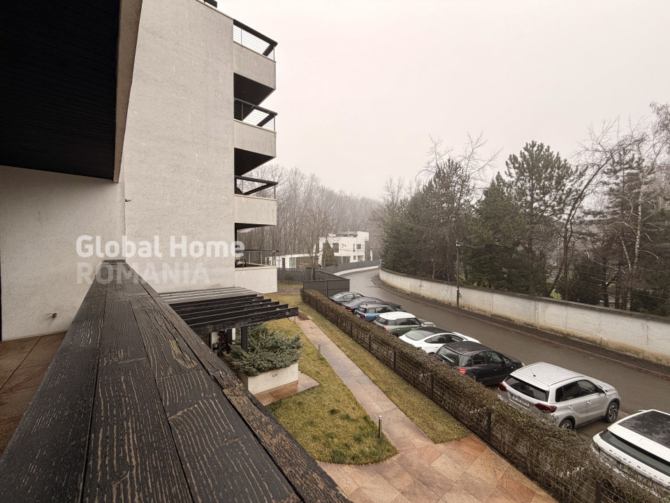 ✔ Balcony with an open panoramic view towards Băneasa Forest, offering a rare sense of privacy and greenery.