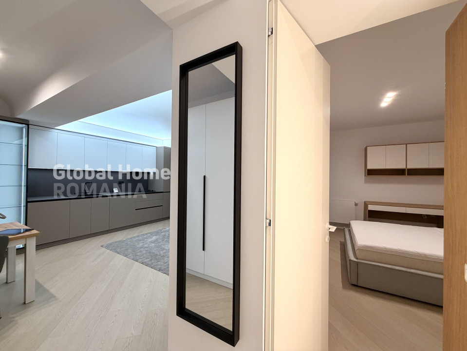 Apartamentul este complet mobilat și utilat, cu mobilier modern și electrocasnice noi, atent alese pentru un confort ridicat. Compartimentarea include un living open-space cu bucătărie complet integrată, un dormitor luminos și o baie elegant finisată.