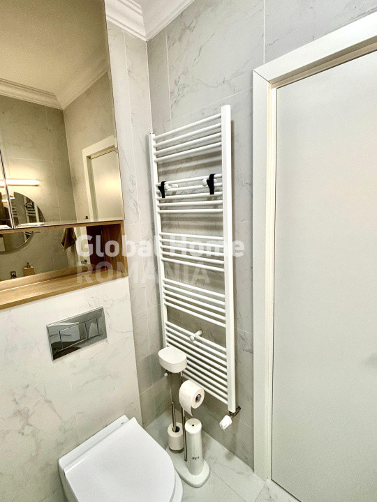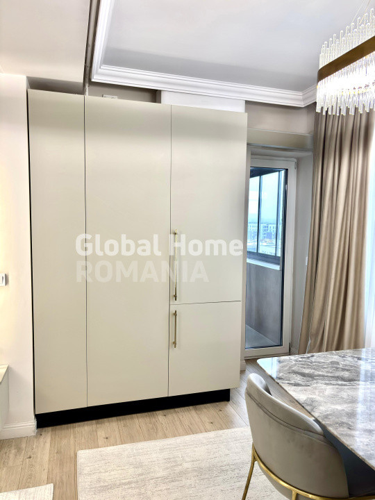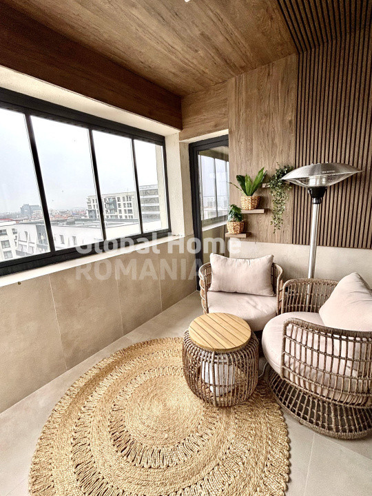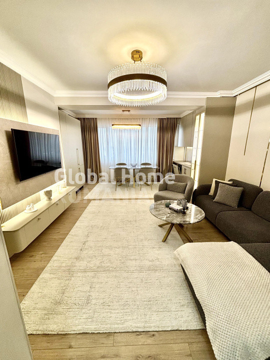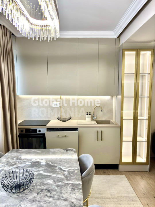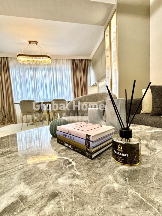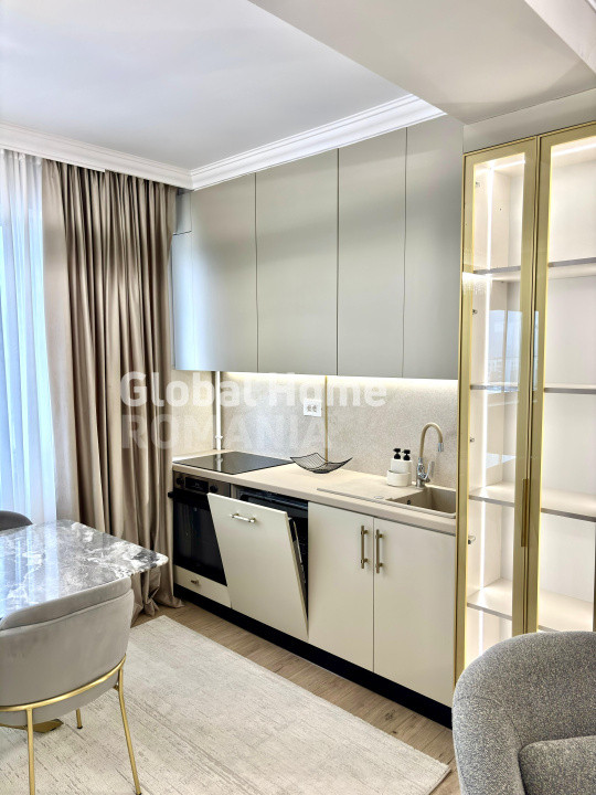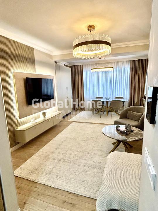 Apartamentul este complet mobilat și utilat, cu mobilier realizat la comandă și realizat într-un stil premium. Compartimentarea open-space creează o tranziție fluidă între zonele de zi și noapte, iar iluminatul ambiental cu mai multe scenarii adaugă un plus de eleganță și funcționalitate.