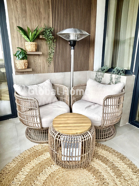 Bucătăria open-space este complet echipată și oferă acces direct către terasa generoasă, ideală pentru momente de relaxare. Dormitorul matrimonial dispune de dressing, aer condiționat și acces către terasă, iar baia este amenajată modern, cu cadă și spații de depozitare integrate.