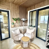 Terasa, închisă cu geamuri glisante, este un real avantaj al proprietății, putând fi utilizată pe tot parcursul anului.