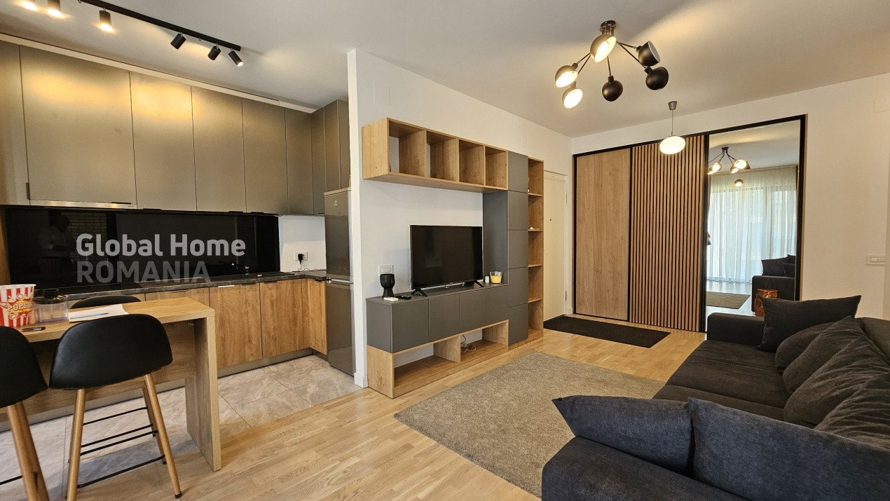 Locuinta este distribuita astfel: Living generos luminat natural, cu ferestre mari şi pardoseală elegantă, conturat excelent prin mobilierul deosebit ales, armonizat perfect cu bucataria open space si zona de dinning, dormitor ce confera un refugiu confortabil pentru odihnă şi relaxare, hol de acces cu multiple spatii de depozitare si 1 baie spatioasa dotata cu finisaje moderne şi accesorii de calitate.