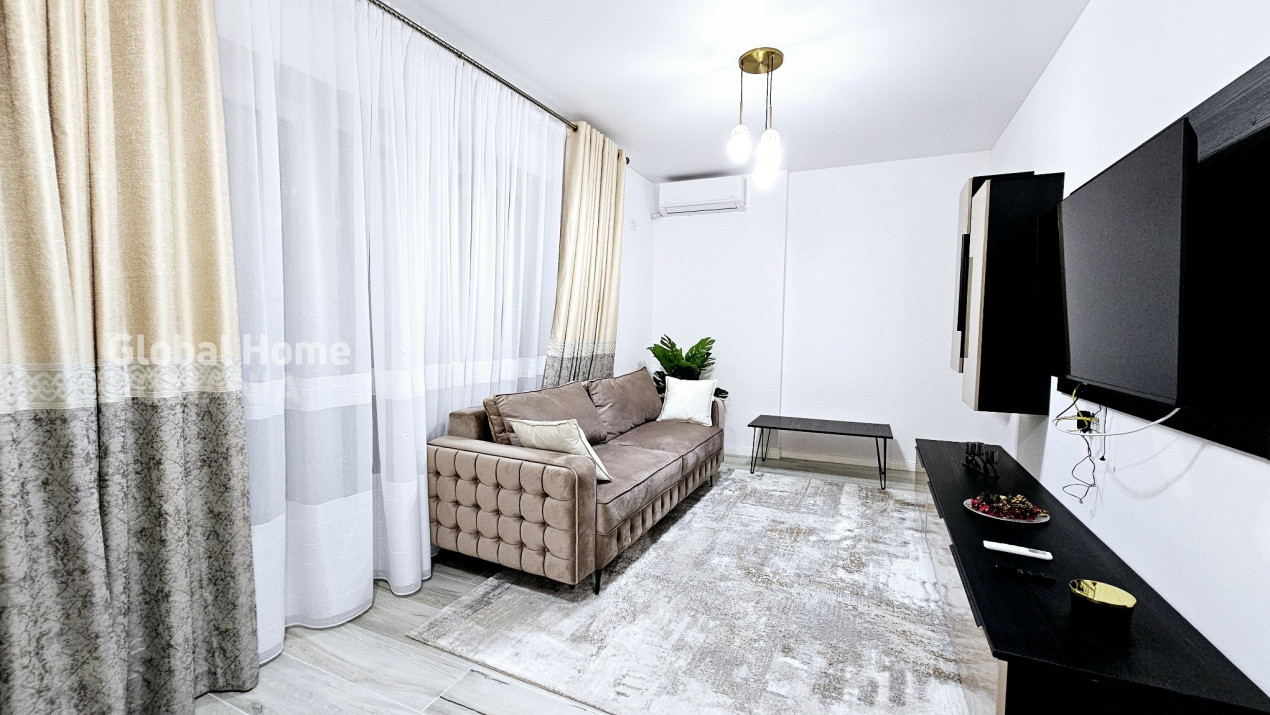 Living luminat natural, cu ferestre mari şi pardoseală elegantă, conturat excelent prin mobilierul deosebit ales, bucatarie complet mobilata si utilata , dormitor ce confera un refugiu confortabil pentru odihnă şi relaxare,holul de acces si 1 baie spatioasa dotata cu finisaje moderne şi accesorii de calitate.