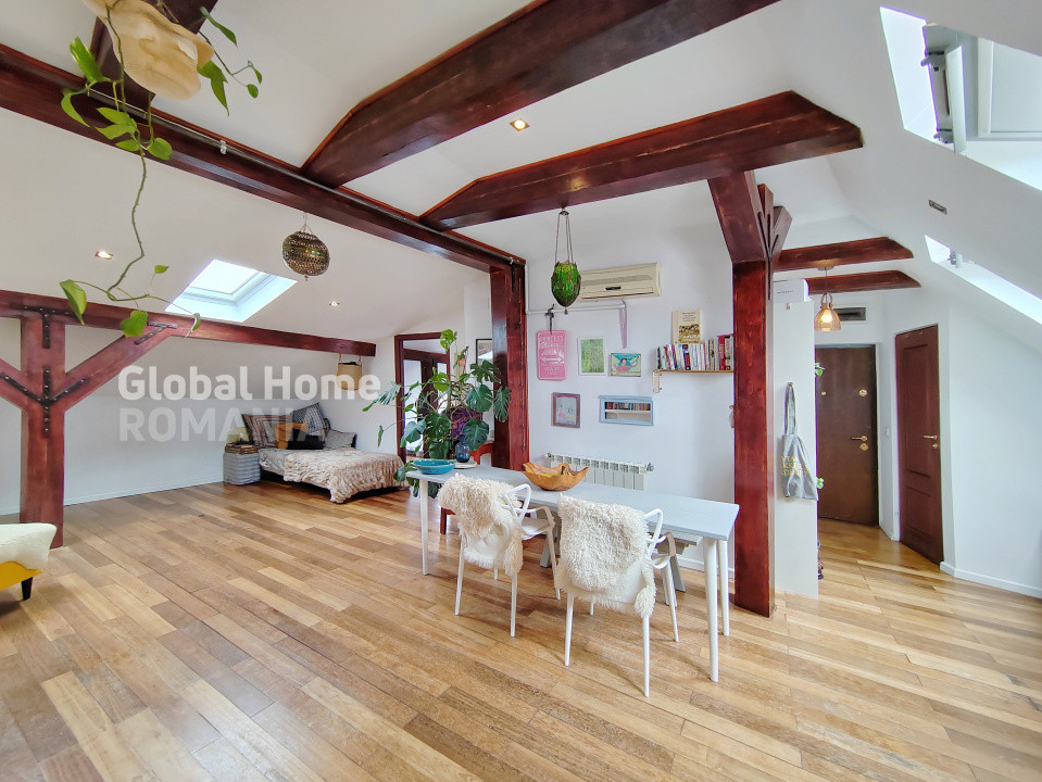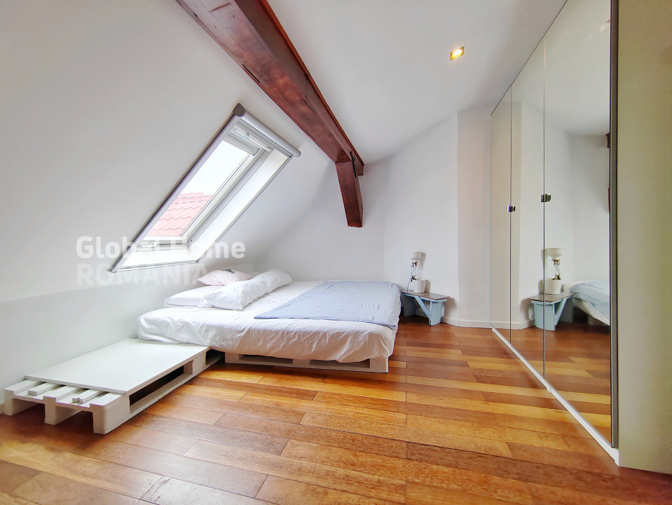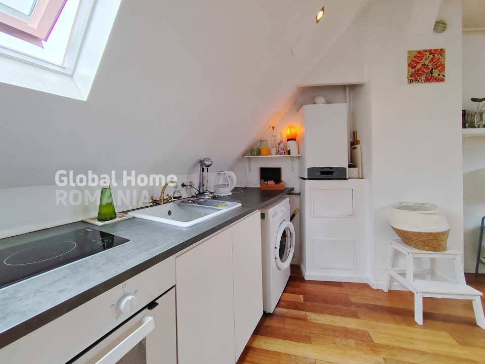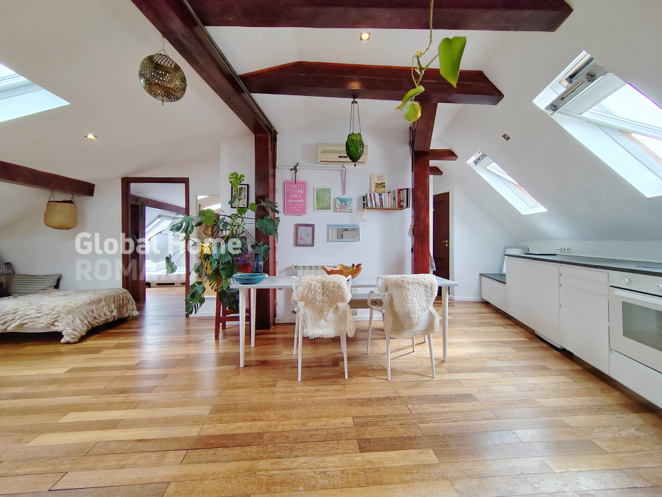 We are offering for rent a charming 2-room, semi-detached apartment, located in the attic of an elegant villa with an inner courtyard. The property has a bohemian and cozy atmosphere, ideally situated in one of the most desirable central areas of the Capital, just a 10-minute walk from Unirii metro station.