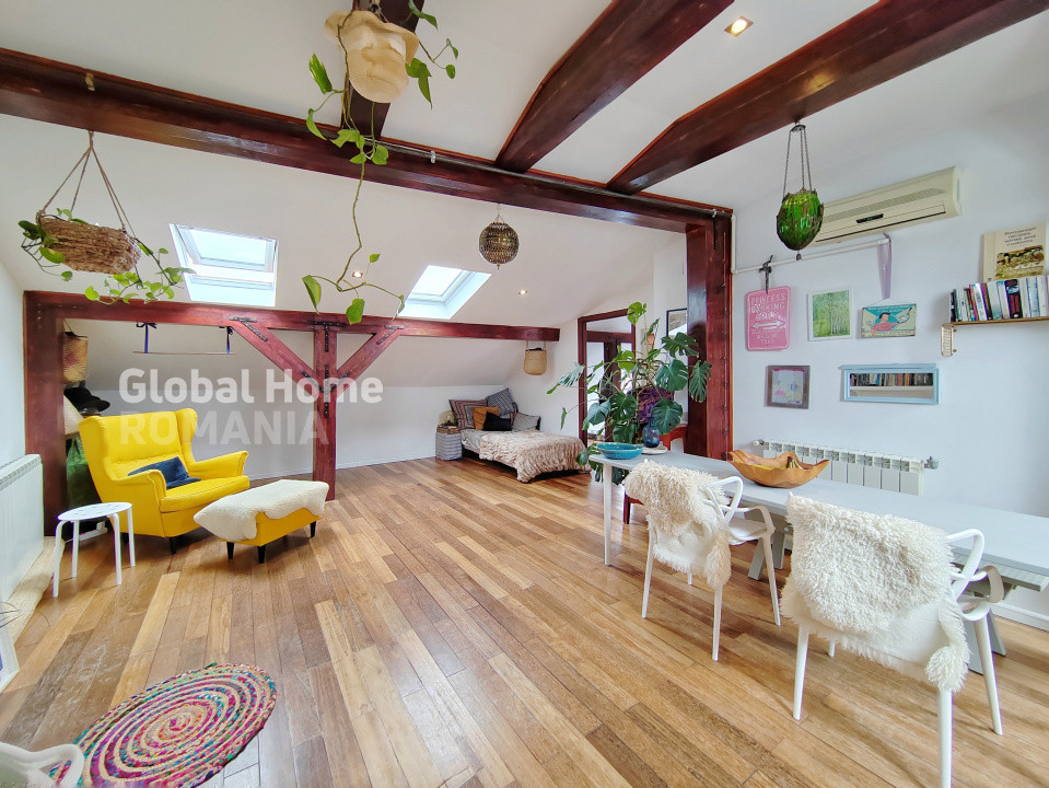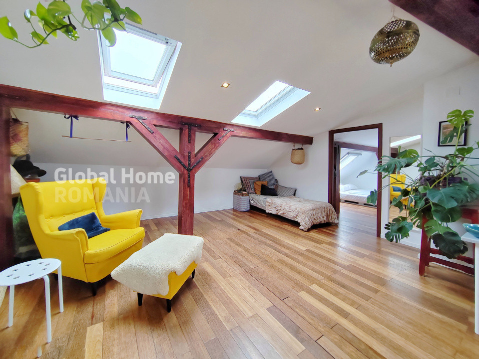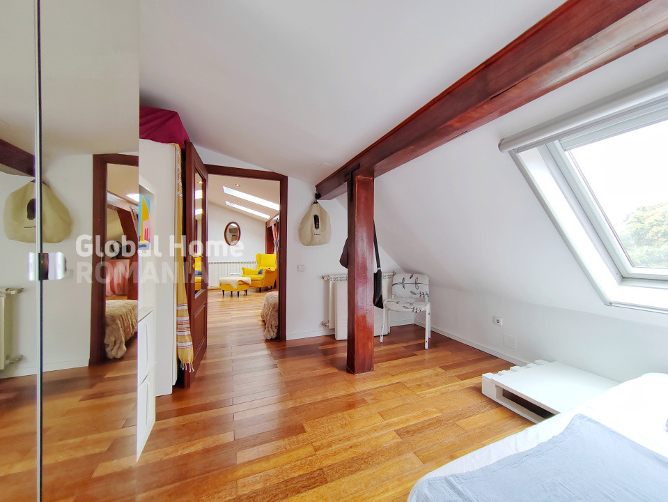 – Etaj: mansardă într-o vilă cu curte interioară