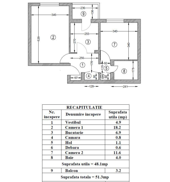 Suprafață utilă: 51.3 mp (inclusiv balcon)