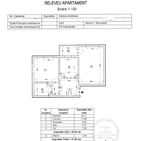 Suprafață utilă: 52 mp (inclusiv balcon)