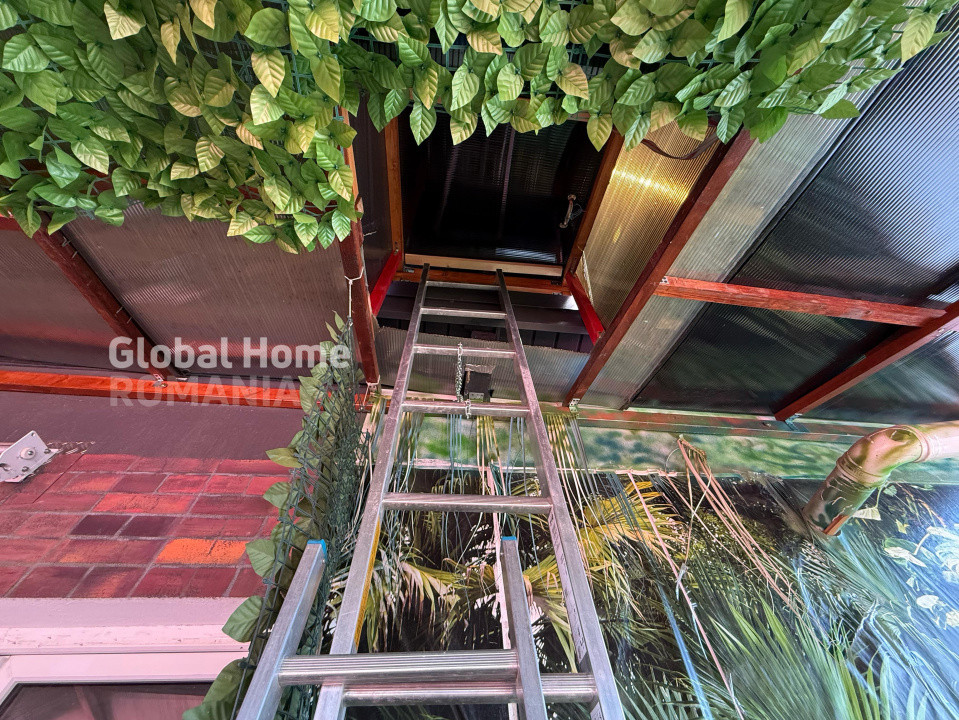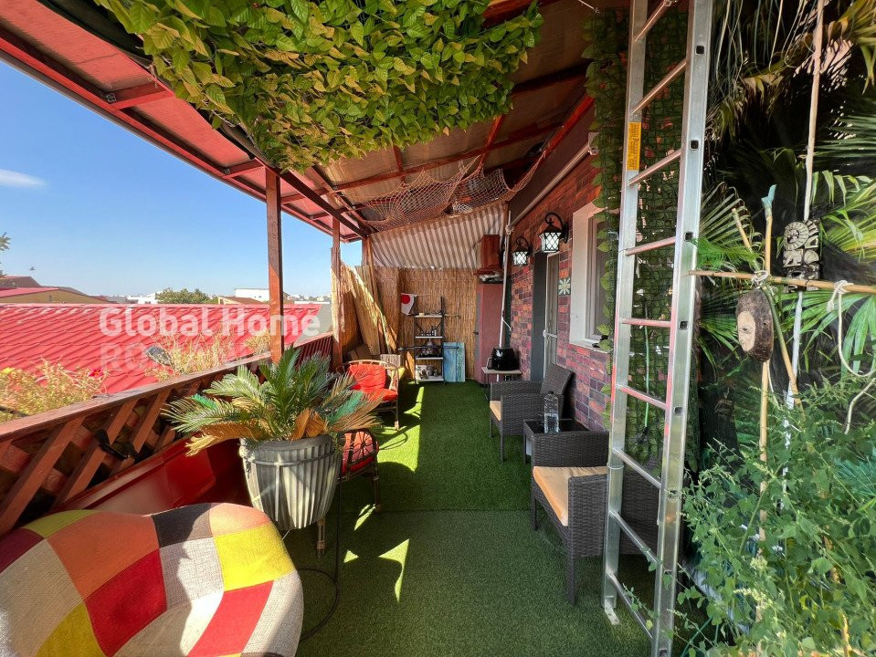 Un apartament luminos, cu o terasă de 17 mp — închisă iarna, deschisă vara — un spațiu liniștit, plin de plante exotice care pot rezista și în sezonul rece. În fața terasei se află doi brazi uriași care creează senzația unei stațiuni montane, dacă ignorăm blocurile de la orizont.