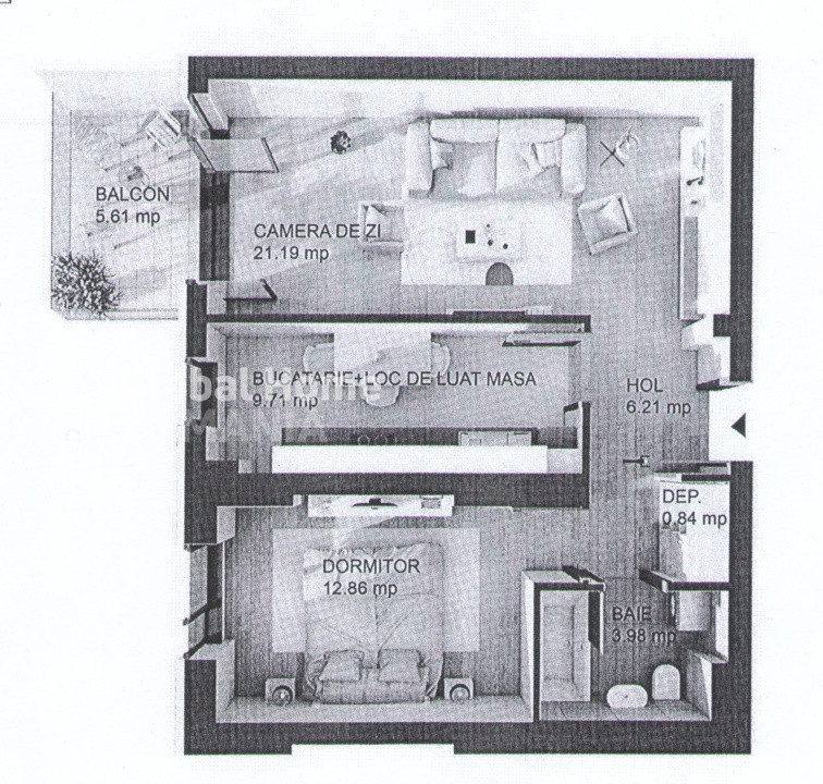 • Balcon deschis, orientat vest, ideal pentru relaxare
