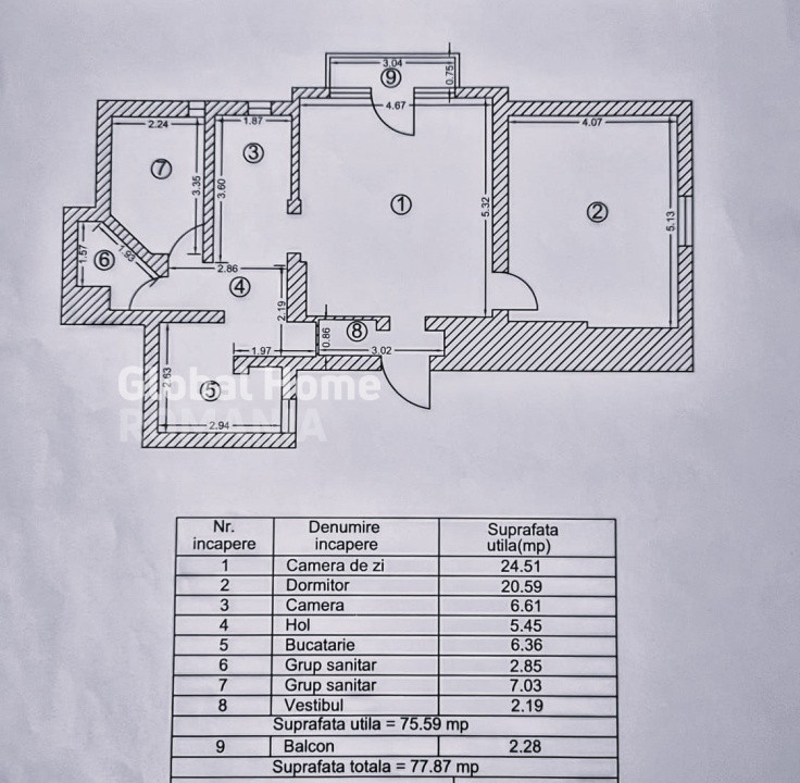 - Suprafata Utila 75.59mp + 2.28 mp Balcon