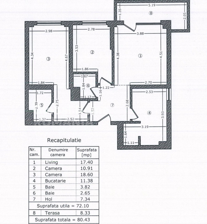 - Suprafata utila: 72mp + Balcon 9mp. S.U.T = 81mp