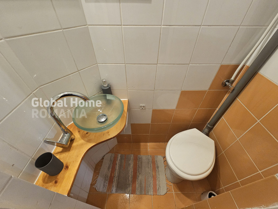 - Bucatarie mobilata si echipata cu: plita electrica, cuptor electric, hota, frigider