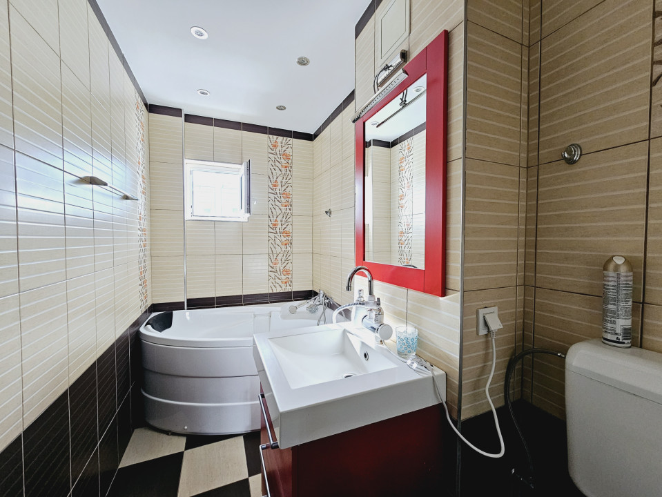 - O baie doatata cu cada si cealalta cu cabina de dus.
