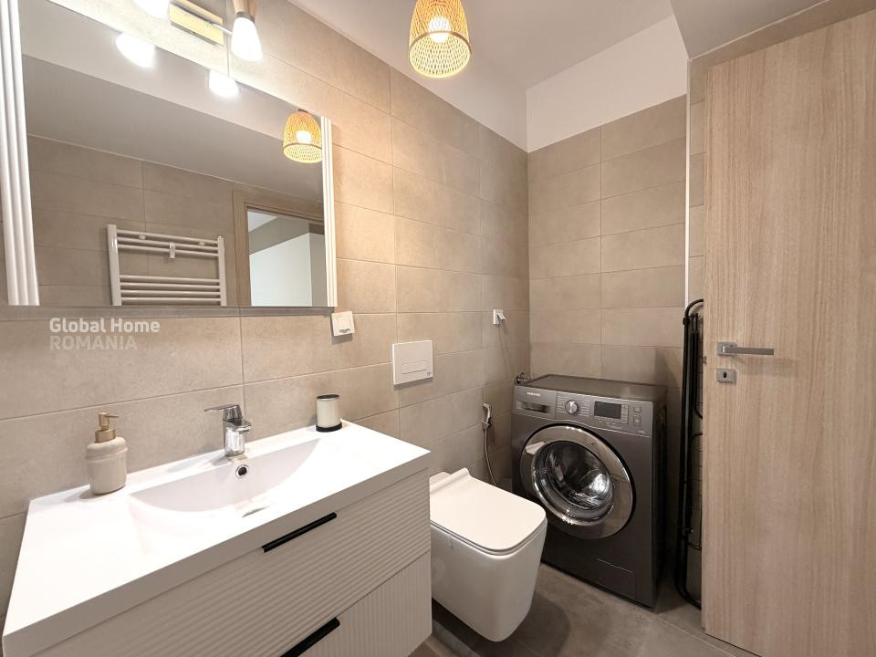 Apartamentul este recent mobilat și complet echipat cu electronice noi. Dispune de living spațios cu canapea extensibilă și Smart TV, bucătărie deschisă utilată modern, două dormitoare cu mobilier de calitate, și două băi cu obiecte sanitare premium. Balconul de 10 MP deschis oferă o zonă plăcută de relaxare. Centrala proprie cu termostat individual și încălzire prin pardoseală asigură confort termic și costuri reduse de utilități. Apa caldă și apa rece sunt furnizate individual, cu contorizare separată.