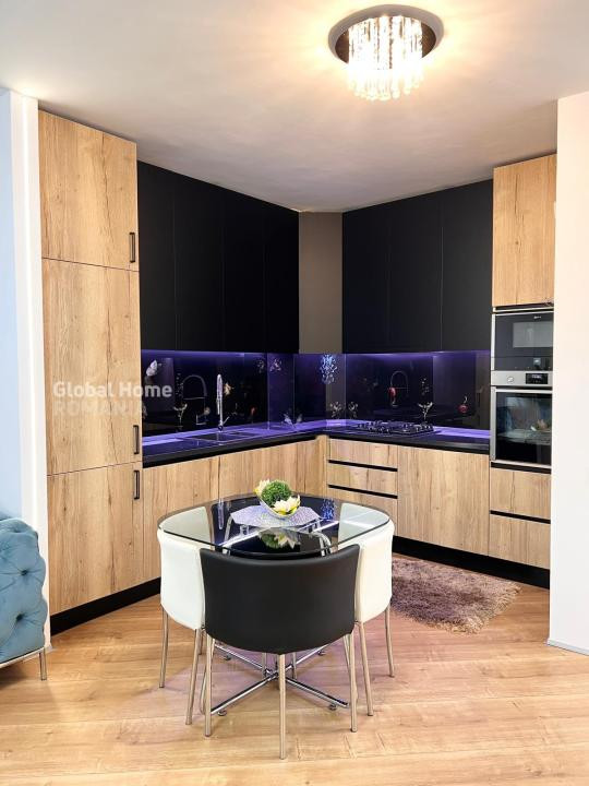 Locuința dispune de living luminos cu bucătărie open space complet utilată cu electrocasnice premium Neff (mașină de spălat vase, frigider, mașină de spălat rufe, cuptor, cuptor cu microunde, aspirator), 2 dormitoare matrimoniale cu TV smart și dressinguri iluminate, 2 băi și balcon. Confortul este completat de aer condiționat multisplit în toate camerele, ușă securizată și interfon. Apartamentul este eficient energetic, cu costuri reduse de întreținere.