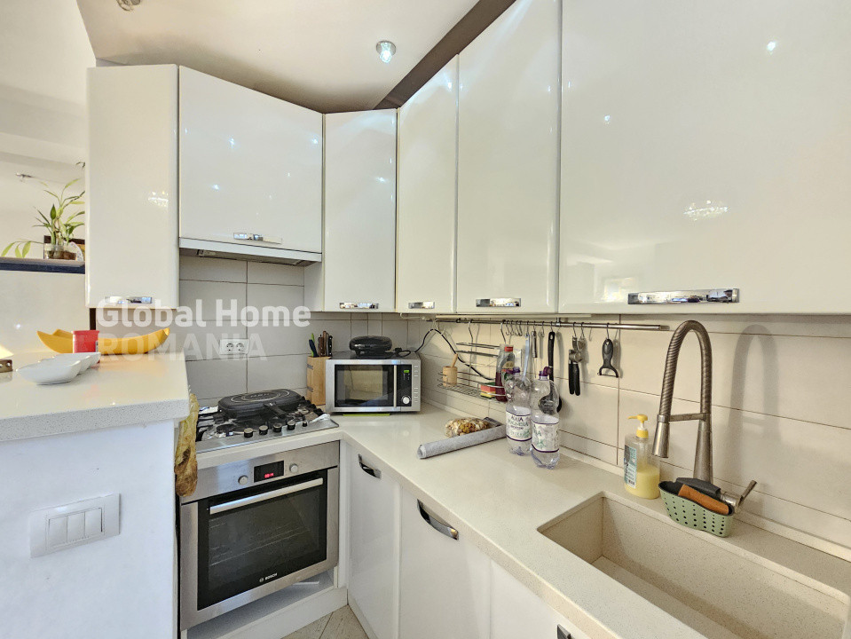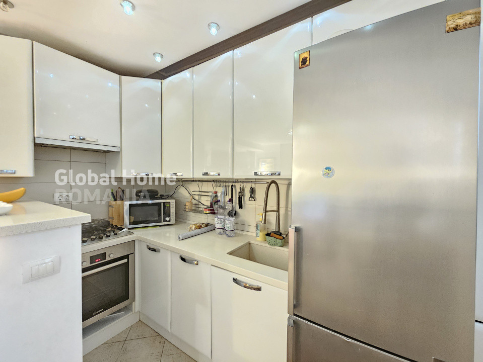 - Bucatarie complet echipata: frigider, plita pe gaz, cuptor electric, hota, cuptor cu microunde, masina de spalat vase