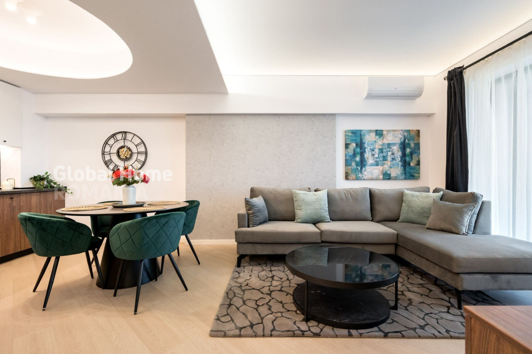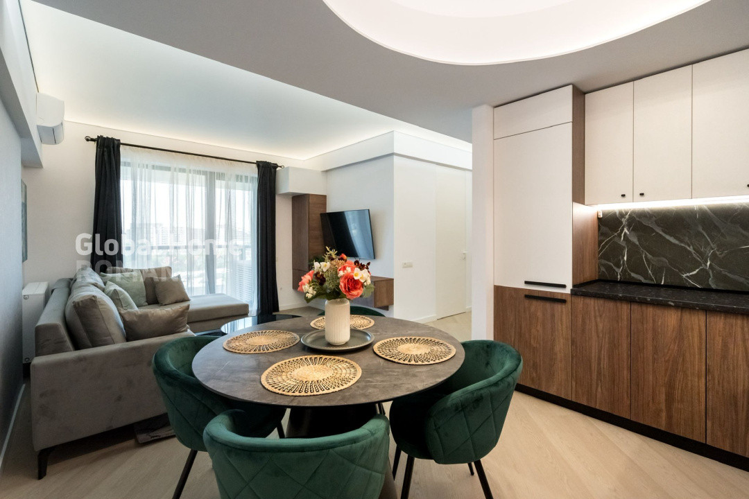 Proprietate elegantă şi spaţioasă, perfectă pentru cei care caută confort şi lux într-un spațiu destinat căminului și familiei, situată în zona Pipera Nord, în cadrul complexului Cortina North. Acest apartament de 3 camere oferă un design modern, cu dotări şi finisaje de înaltă calitate și mobilier de lux.