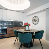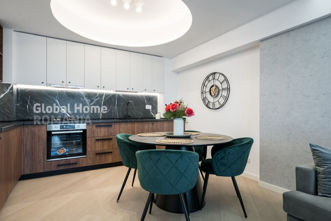 -Living generos, luminat natural, cu ferestre mari şi pardoseală elegantă, conturat excelent prin mobilierul deosebit ales, armonizat perfect cu bucătăria open space și zona de dining.
