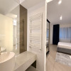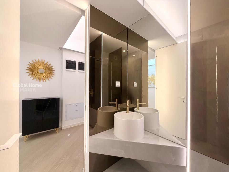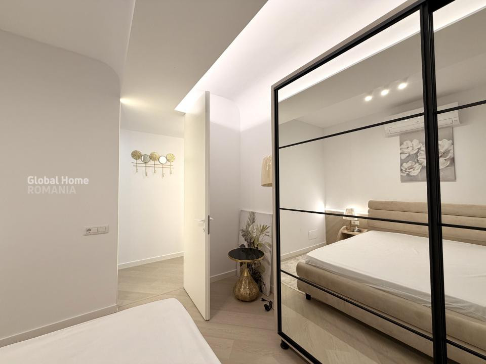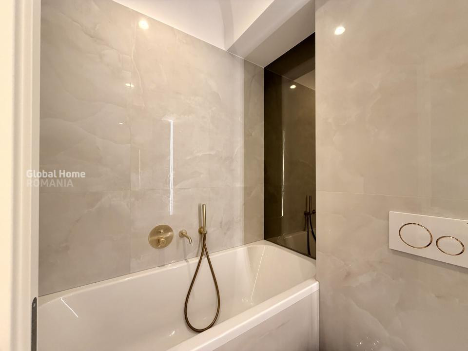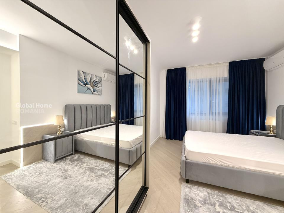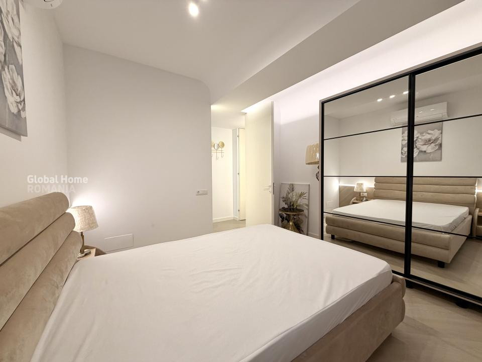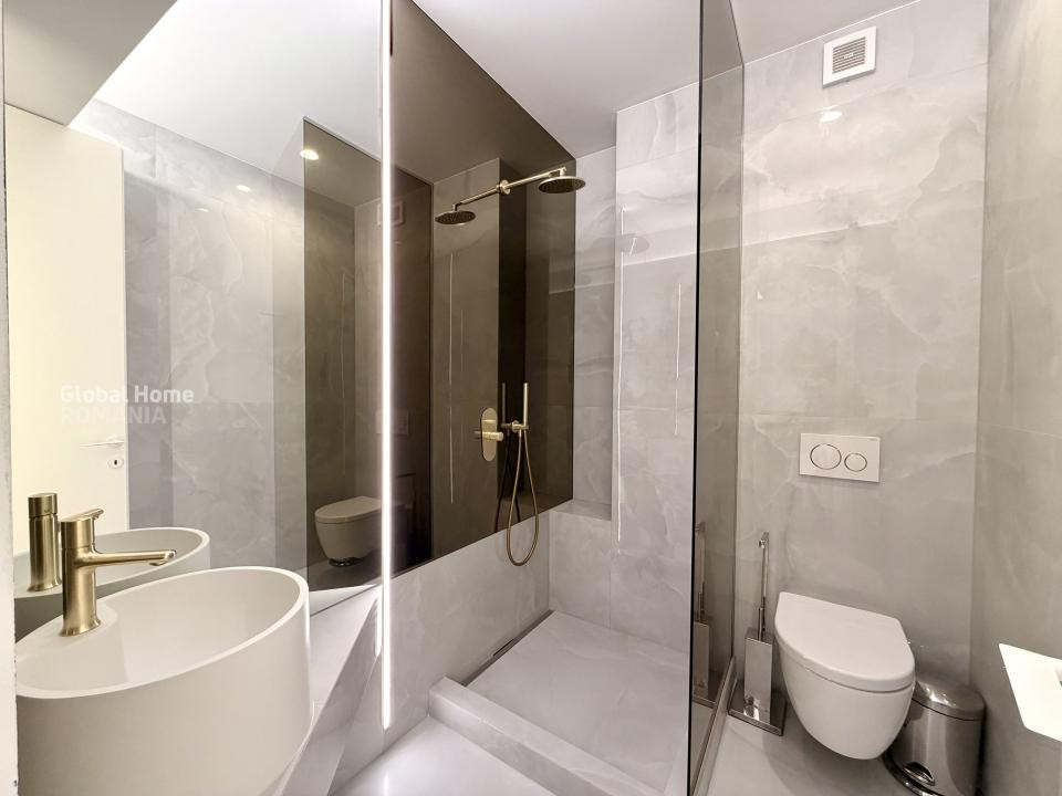 Dormitorul matrimonial oferă un ambient elegant și confortabil, cu mobilier dedicat și spații generoase de depozitare, iar cel de-al doilea dormitor este ideal ca birou, cameră pentru copii sau dormitor secundar. Apartamentul dispune de băi moderne, una dotată cu duș walk-in, cealaltă cu cadă, ambele finisate cu obiecte sanitare premium și accente elegante.