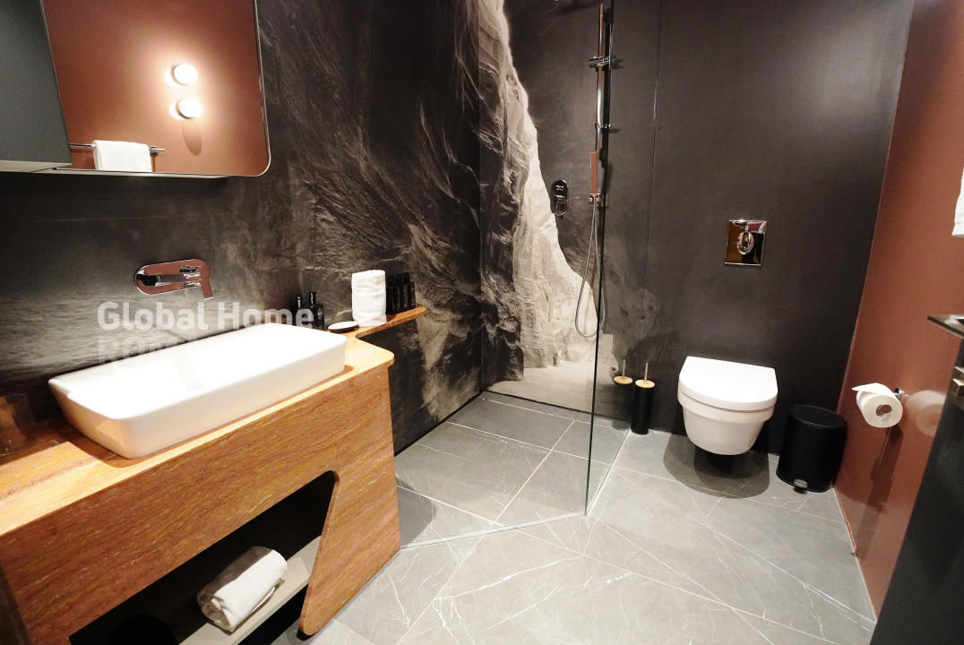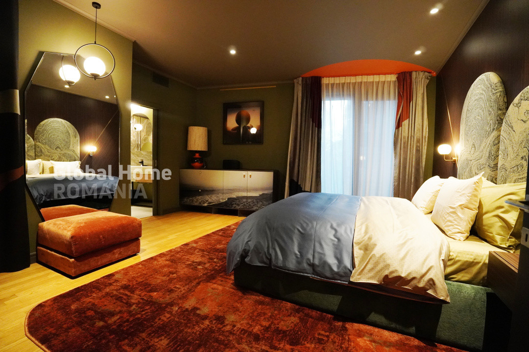 Interiorul, conceput și mobilat de un designer de top, emană rafinament și confort în fiecare detaliu. Fiecare piesă de mobilier, obiect decorativ și element arhitectural a fost ales pentru a crea un spațiu cald, echilibrat și extrem de funcțional.