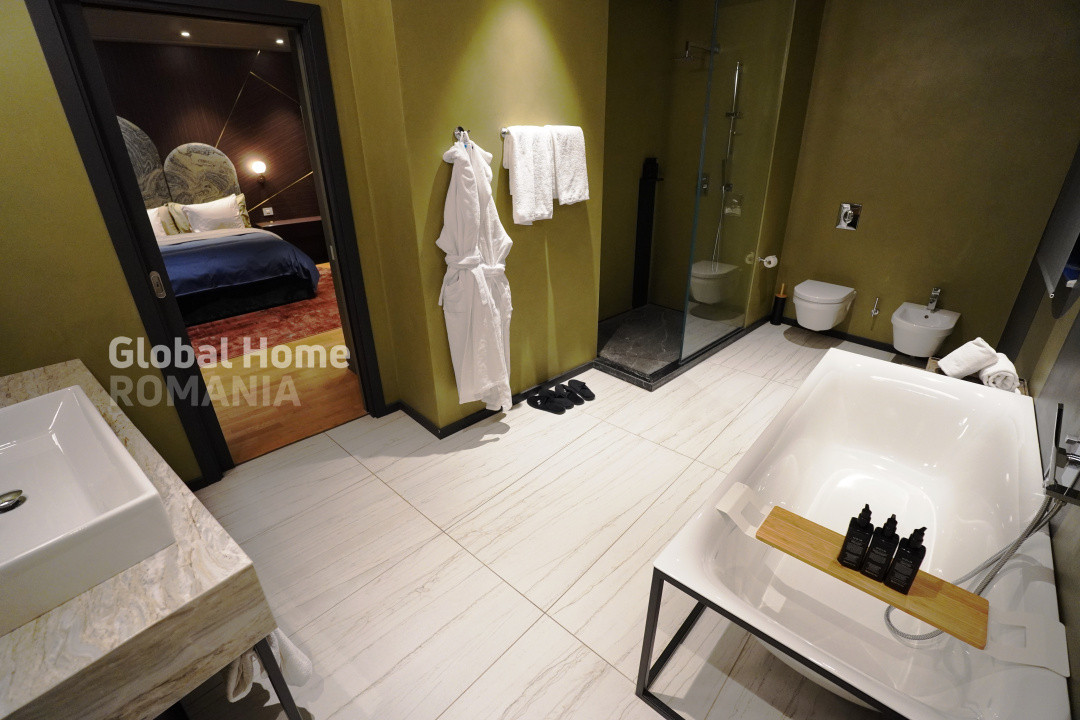 Dormitor matrimonial sofisticat, cu baie proprie finisată premium