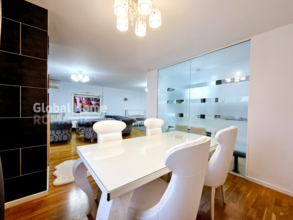Apartamentul dispune de centrala termica cu incalzire prin calorifere, AC, rulouri din aluminiu, semineu, zona de gratar amenajata pe terasa, mobilier cu design clasic si modern.
