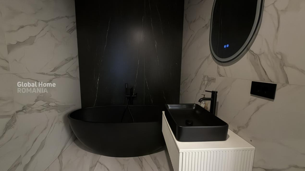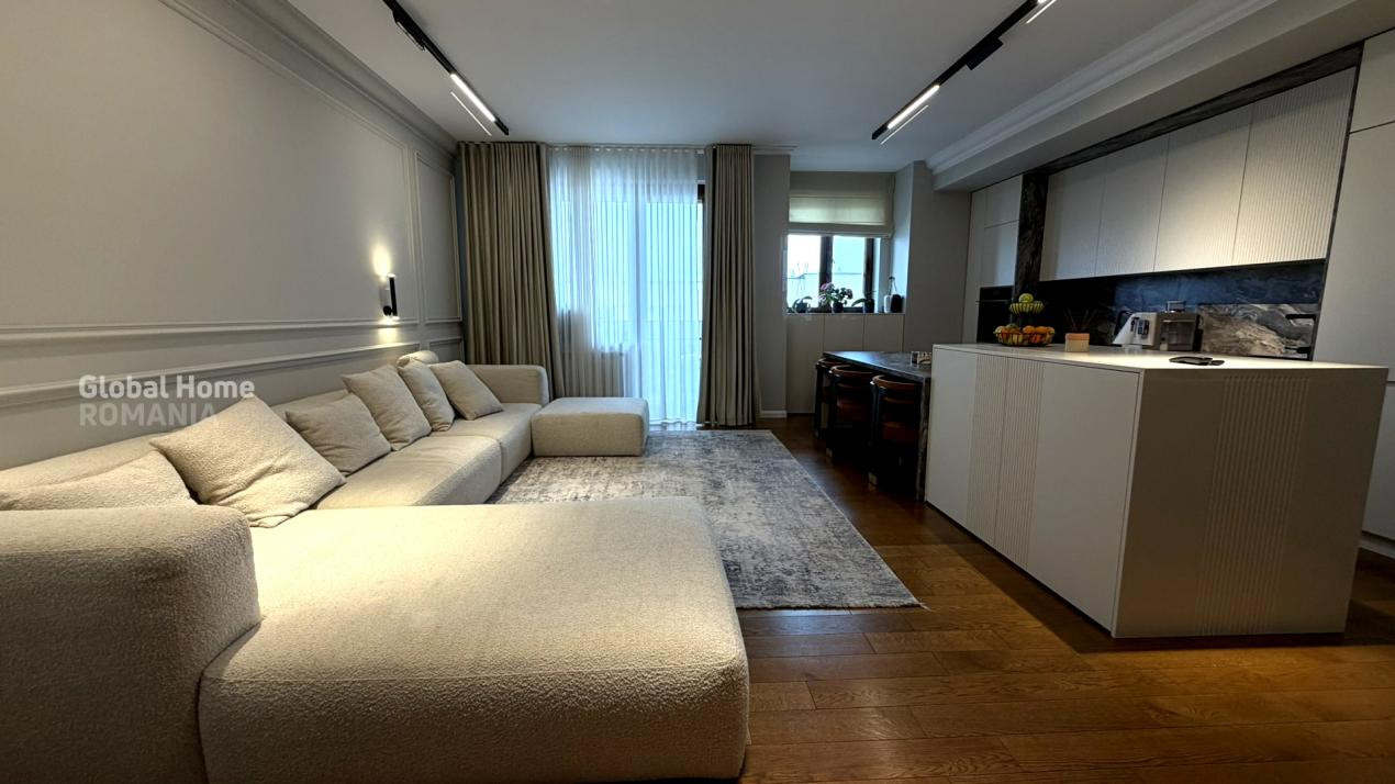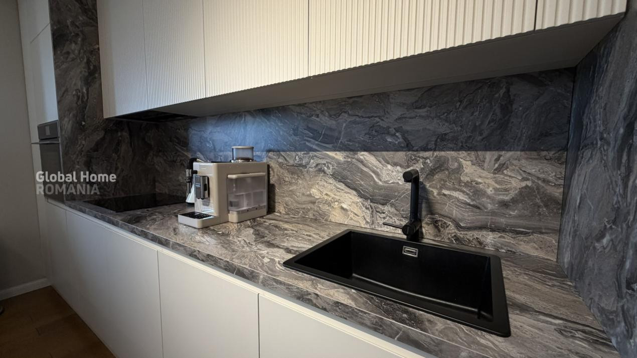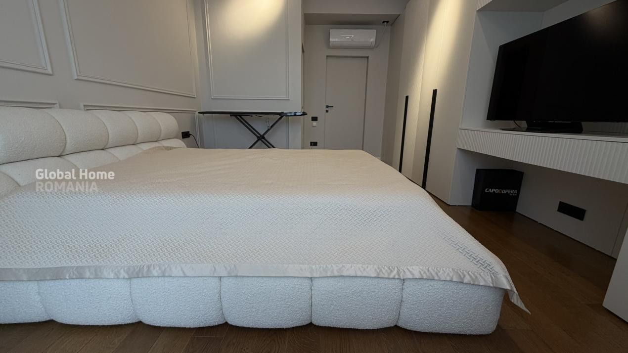 Se vinde complet mobilat și utilat, cu electrocasnice premium: plită și mașină de spălat vase Bosch, cuptor și hotă Teka, mașină de spălat rufe Bosch, uscător Miele, mini-bar și răcitor de vinuri Teka, TV LG OLED și videointerfon.