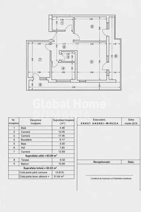 • Suprafață totală: 83 mp