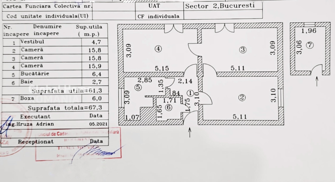 – Suprafață totală: 67 mp (inclusiv boxă de 6 mp)