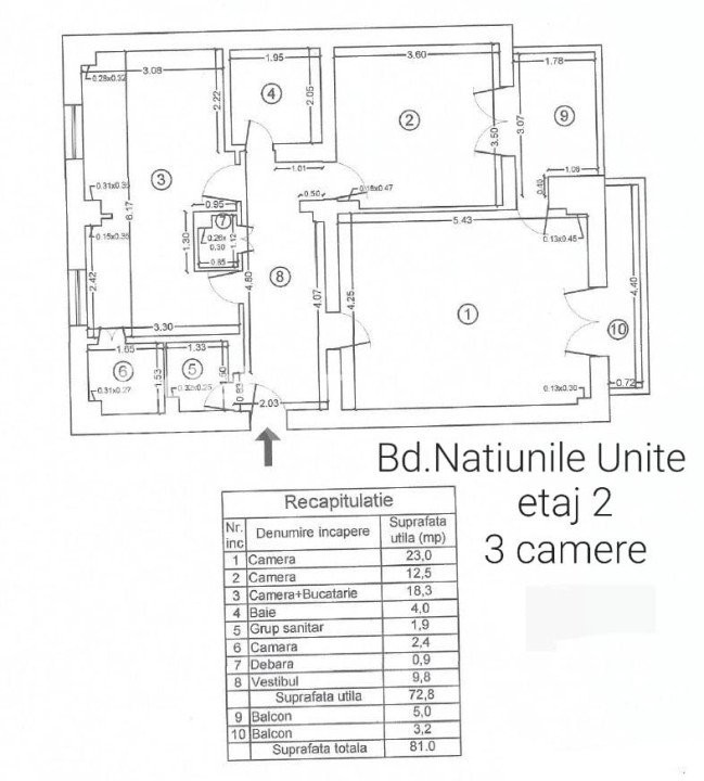 Proprietatea este eficient compartimenta, de tip decomandat, suprafete generoase, luminoase, situata la et. 2 al unui bloc cu regim de inaltime P+ 7 Et.