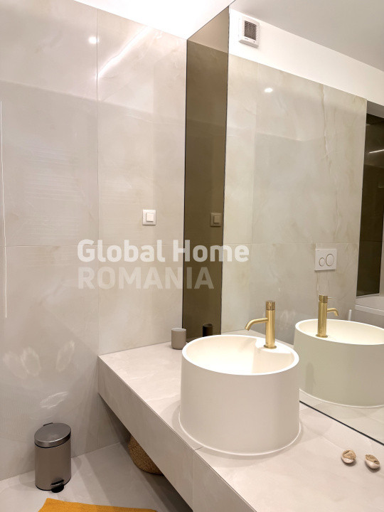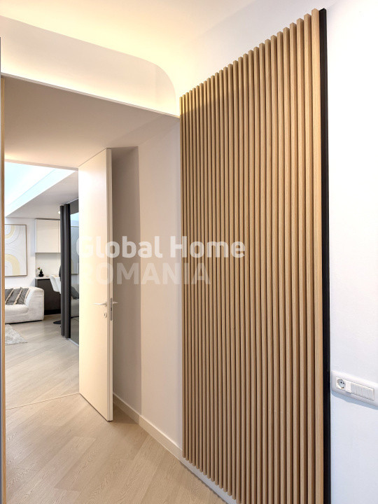 Apartamentul impresionează printr-un design interior contemporan, realizat cu atenție la detalii, finisaje premium și un concept unitar, menit să ofere un stil de viață rafinat. Zona de living este spațioasă, luminoasă și primitoare, mobilată cu piese moderne, în nuanțe calde și naturale, completată de un iluminat ambiental discret, ce creează o atmosferă relaxantă.