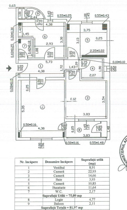 Proprietatea beneficaza de o compartimentare de tip decomandat, incaperi spatioase si luminoase, avand o suprafat utila de 75mp+ doua balcoane, insumand 82mp.
