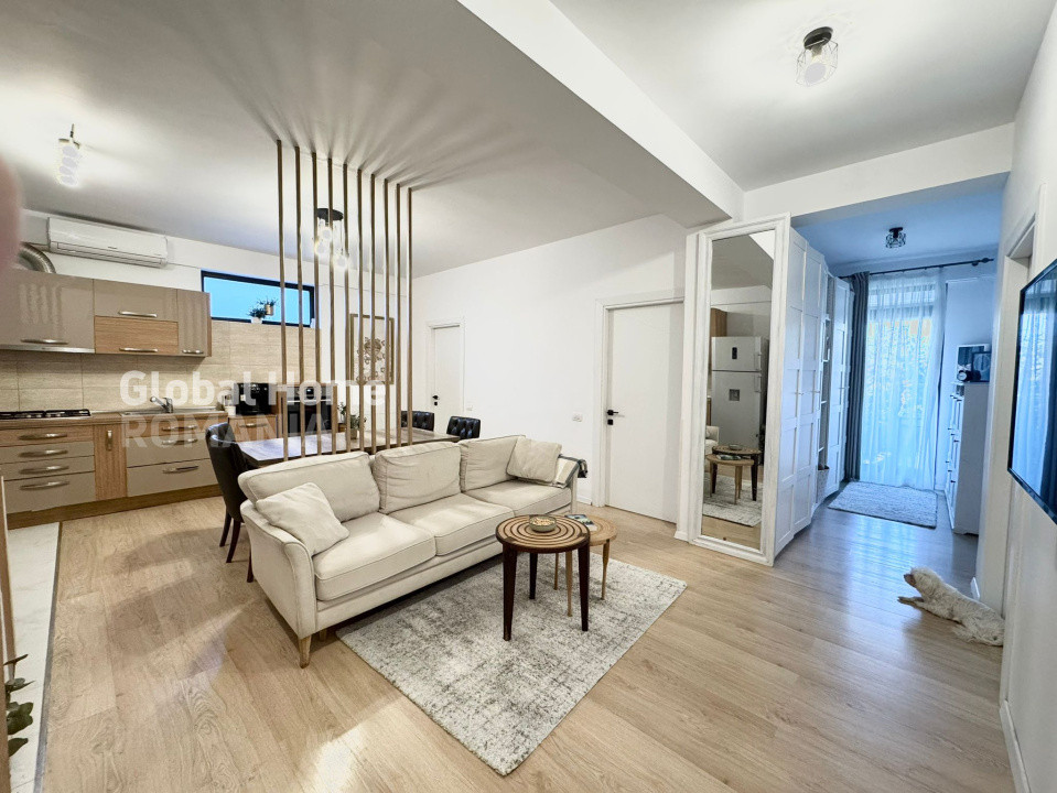 Un apartament care oferă echilibrul perfect între confortul urban și liniștea unei locuințe cu grădină.