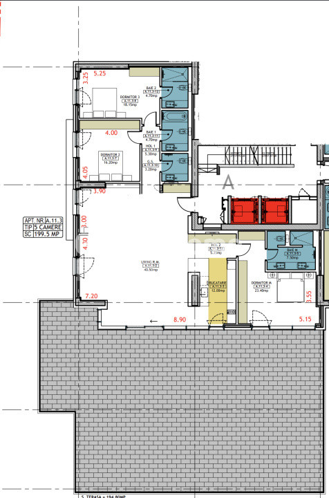 Suprafata totala construita a apartamentului este de 200 MP (141 MP + terasa).