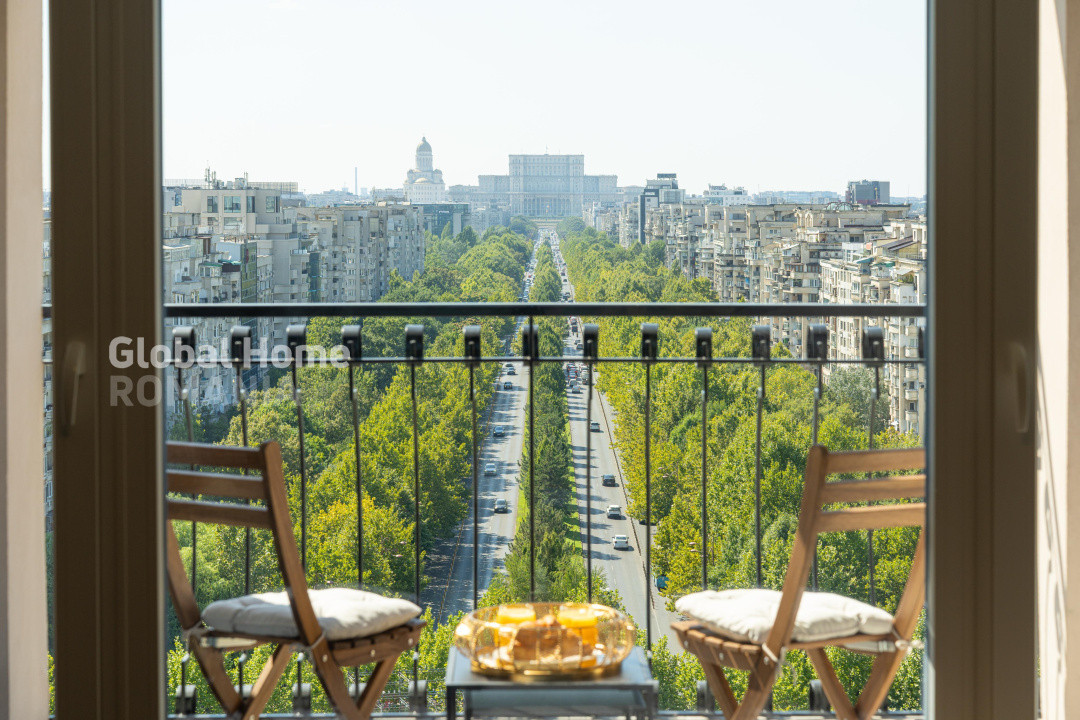 Suprafața totală de 125 mp este compartimentată inteligent pentru a oferi confort și eleganță. Locuința beneficiază de o priveliște deosebită către Splaiul Unirii și Casa Poporului, fiind ideală pentru cei care apreciază panoramele urbane spectaculoase.